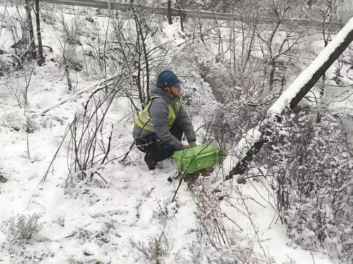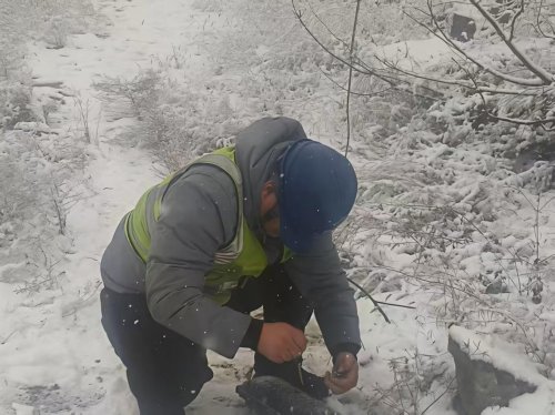 12月12日清晨,中心接到薛虎沟煤业紧急通知,其瓦斯监控系统通信链路中断,直接影响井下安全监测数据传输。中心立即启动应急预案,因山区道路积雪结冰,车辆无法通行,技术骨干韩永杰、郭凡其主动请缨,背负熔接机、测试仪等工具冒雪徒步前往。两人克服山路湿滑、能见度低等困难,迅速抵达现场。与此同时,胡松坚守岗位严守客户端,与客户保持实时沟通,及时传递进展并反馈现场需求,确保内外协同高效。