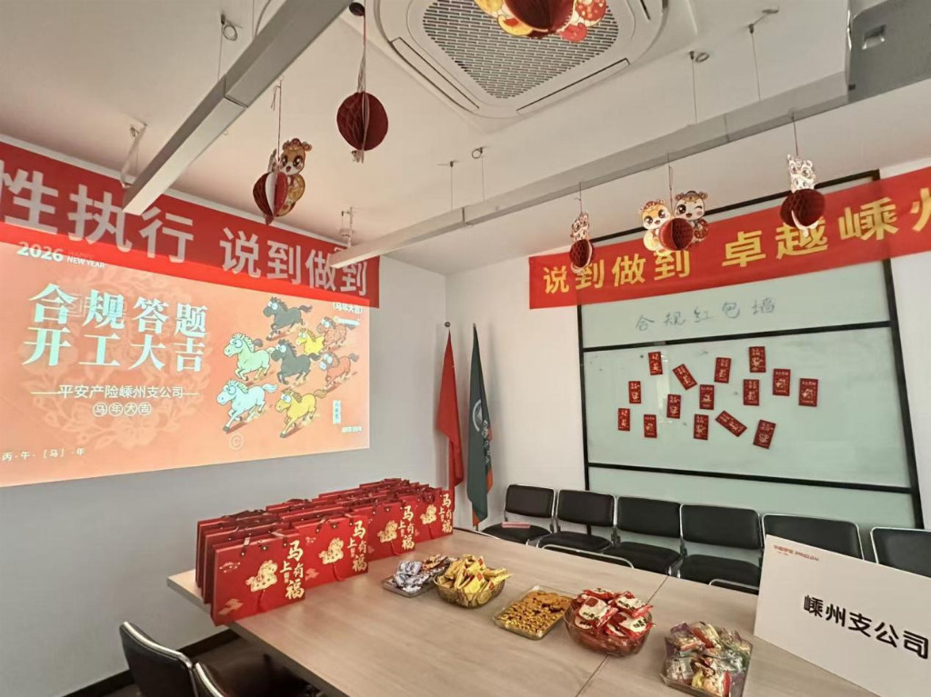 岁序更替,华章日新。为筑牢合规防线,赋能业务经营与发展,以更生动、更温情的形式唤醒全员合规意识,2026年2月24日,农历新年首个工作日,平安产险嵊州支公司职场会议室洋溢着喜庆与活力,公司“开工利‘规’·平安启航”新春合规红包墙活动在这里火热开展,以传统“开工利是”习俗融合合规知识答题的形式,为全体员工送上新春第一份“合规好运”。
